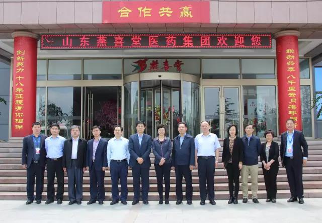 2017年5月5日,山东省食品药品监督管理局局长马越男一行莅临山东燕喜堂医药集团指导工作。威海市食品药品监督管理局局长傅世涛、副局长王桥、经区管委副主任刘昌清、经区市场监督管理局局长于政涛、副局长邹本明以及山东燕喜堂医药集团董事长于志刚、总经理李松携公司高管随行陪同。