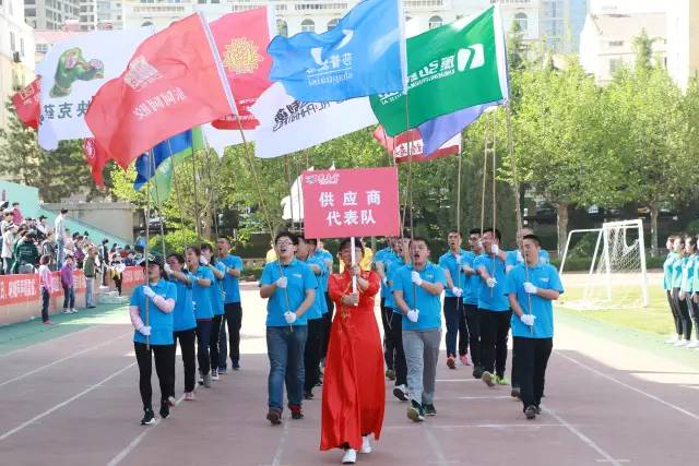 燕喜堂的护旗队手擎鲜艳的五星红旗迈着矫健的步伐,昂首阔步的走来。上午8时30分,“青岛国风·山东燕喜堂第十一届运动会”正式开始。开幕式上,伴随着激昂的《运动员进行曲》,燕喜堂公司各代表队及供应商代表队的运动员踏着整齐的步伐,经过主席台接受检阅,每支代表队都喊出自己团队的拼搏口号,展现着燕喜堂开拓创新、勇往直前的精神风貌。