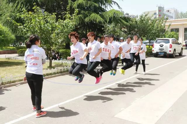 一分钟跳大绳:参赛队员们一个接一个的跳跃起来。