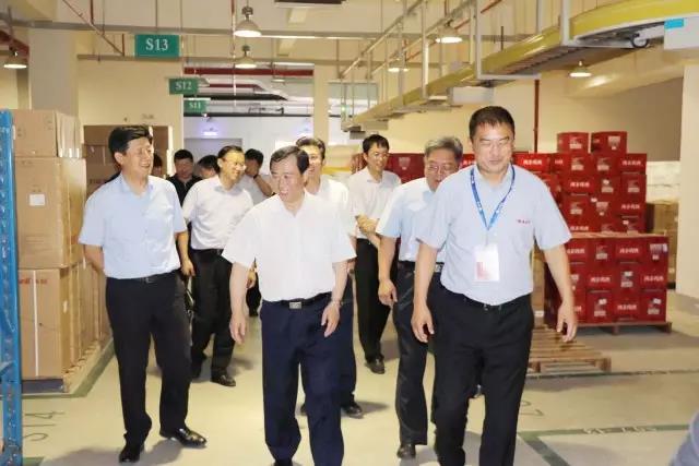 叶立耘副市长一行首先参观公司物流中心,在于志刚董事长的陪同下,领导们听取了公司发展历程、物流规模、运作模式等情况介绍。同时,于董详细介绍了物流中心高位立体货架的高架库和全程无纸化作业的拣选小车等。叶立耘副市长对公司先进的物流设备提出认可,并指示要不断提高智能化配送水平,提高配送效率,要在医药配送领域起到榜样作用。