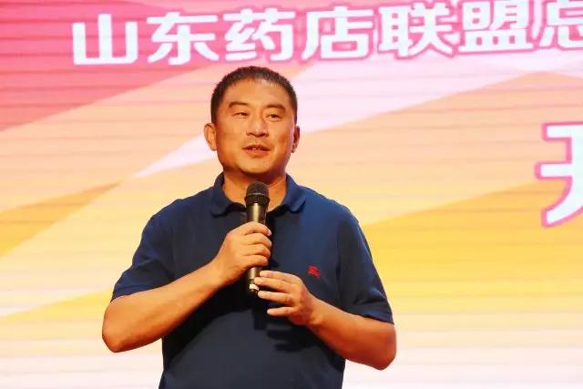 中国医药物资协会副会长、山东药店联盟理事长、山东燕喜堂医药集团董事长于志刚致辞