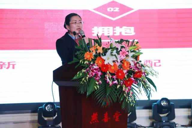 随后,在大家热烈的掌声中,山东燕喜堂运营总监姜洁如上台作燕喜堂2018年连锁运营服务支持,以坦诚相待的合作态度,获得了厂商朋友的积极回应与一致好评。
