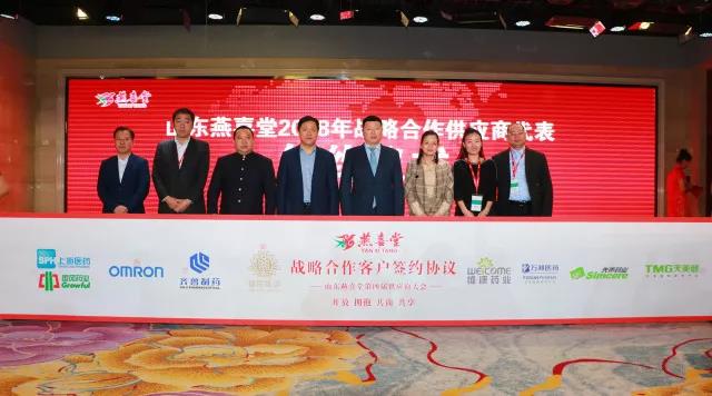 山东燕喜堂总经理李松与22家供应商共伙伴共同进行了2018年年度战略协议签订仪式。