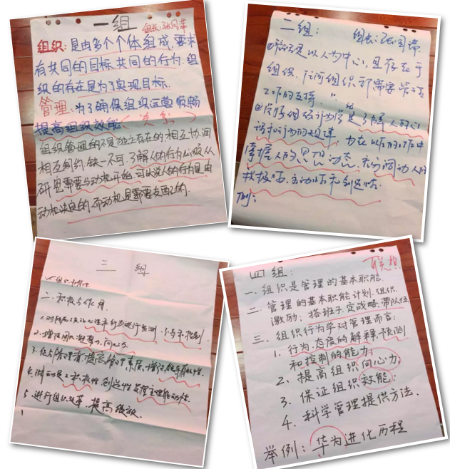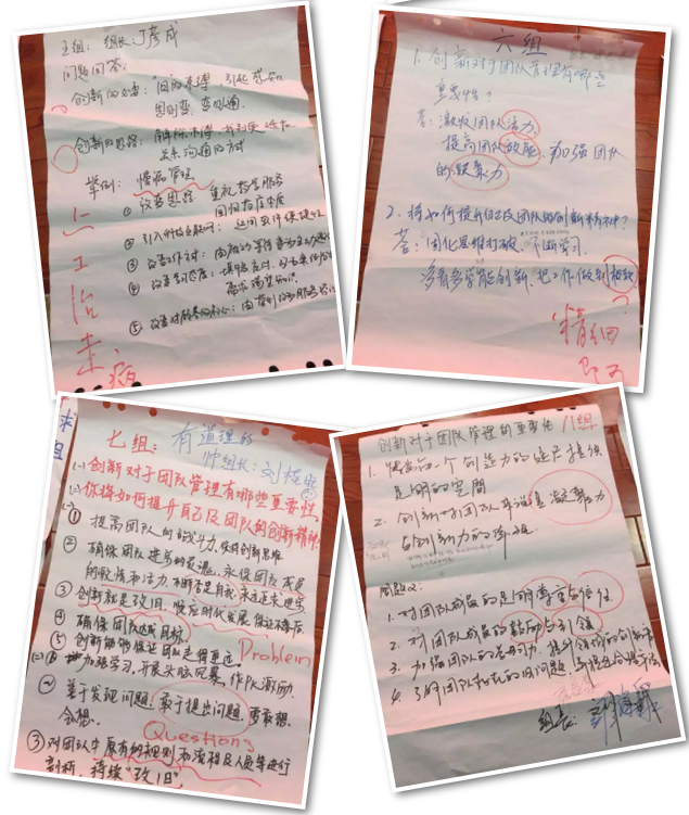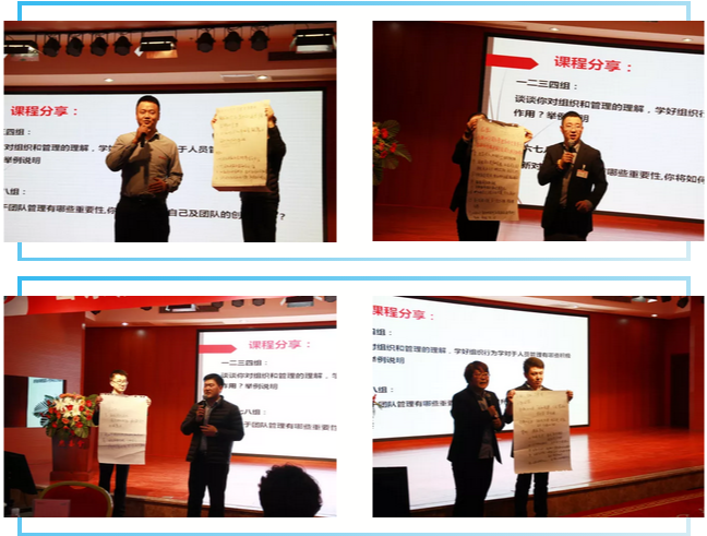 两天的课程下来,同学们被郑院长的幽默风趣及深入浅出的讲解所折服。每天的课程结束后,同学们利用晚上的时间进行课程内容的分享。各团队成员以小组代表发言和团队展示的形式,总结了学习过程中的心得和感受。这次培训,不仅让大家学习到了知识,更让大家更清晰的认识到个体、团队、组织的意义,知道个人在团队的力量有多大,更要把在案例分析到的管理理念结合实际工作经验来实践,能更好的运用到工作中去并提升工作效率。