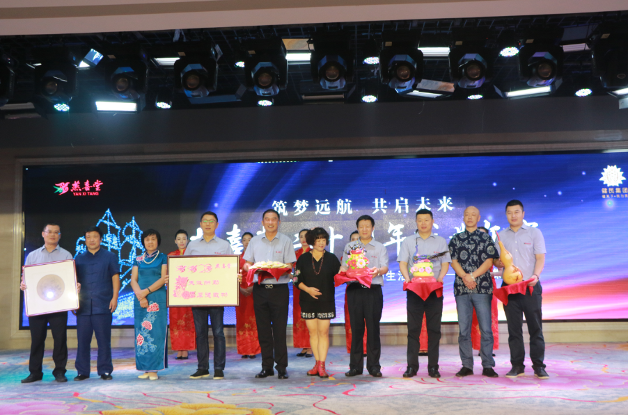 当日,东阿阿胶、华润三九、扬子江药业、广州白云山、健民药业、广东纽斯葆、辉瑞制药、汤臣倍健药业、云南白药、青岛双鲸药业等700余名全国知名药企代表及老百姓大药、益丰大药房、一心堂、漱玉平民大药房等300余名全国知名医药连锁代表莅临会议现场,分享燕喜堂20年华诞喜悦的同时,送上了各自的祝福。