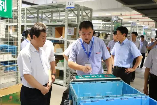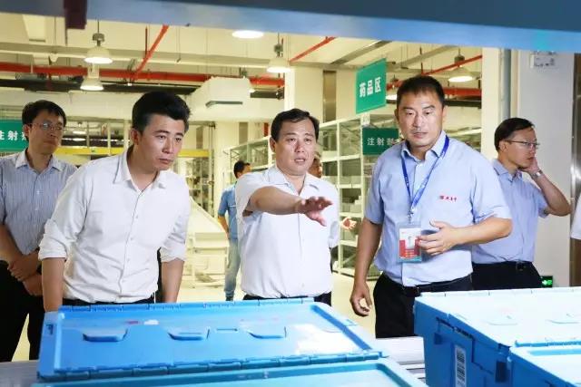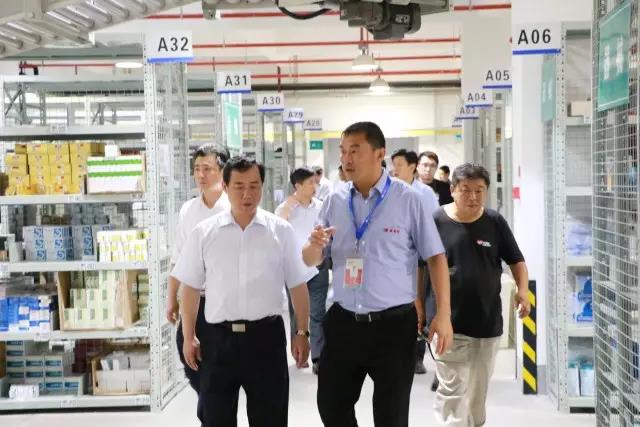 叶立耘副市长一行首先参观公司物流中心,在于志刚董事长的陪同下,领导们听取了公司发展历程、物流规模、运作模式等情况介绍。同时,于董详细介绍了物流中心高位立体货架的高架库和全程无纸化作业的拣选小车等。叶立耘副市长对公司先进的物流设备提出认可,并指示要不断提高智能化配送水平,提高配送效率,要在医药配送领域起到榜样作用。