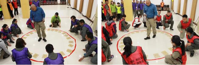 活动伊始,大家就在教练的引导下被分成4个小组,经过各小组成员的脑力激荡,一首首嘹亮的队歌、一个个响亮的团队口号和富有特点的团队LOGO逐一精彩亮相,“先锋队”、“凯旋队”、“王者荣耀”、“刀锋队”,个性鲜明、充满力量的团队形象拉开了体验式拓展的序幕。
