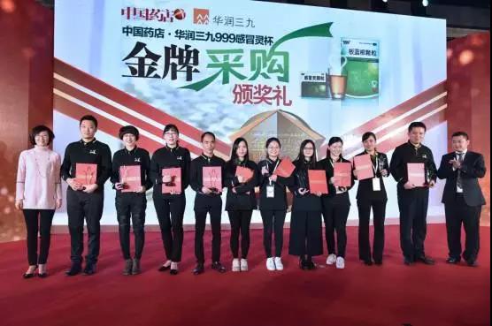 华润三九营销中心助理总经理喻翔和中国药店杂志常务副主编郝岚为金牌采购获奖者颁发了奖杯与证书。