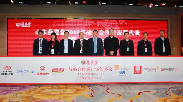 山东燕喜堂总经理李松与22家供应商共伙伴共同进行了2018年年度战略协议签订仪式。